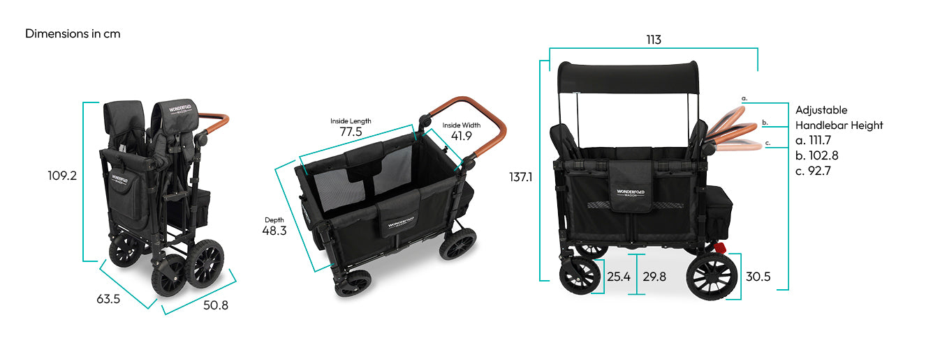 Wheels: Clean stroller wagon wheels regularly with water and remove any dirt. Be sure to wipe off any remaining water with a dry cloth.